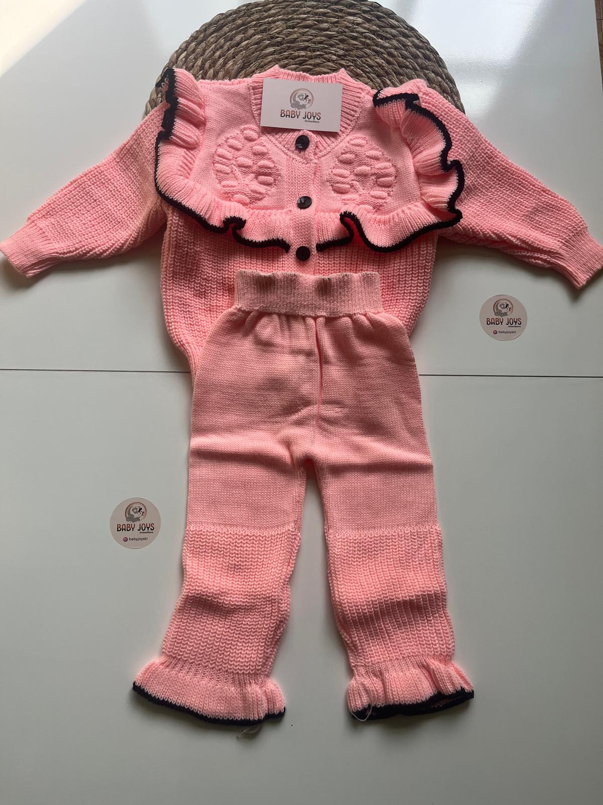 Fırfırlı Kız Bebek 2'Li Triko Takım