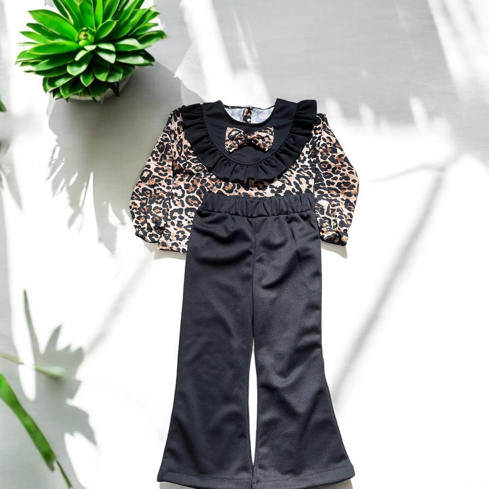Çocuklarınızın şıklığını ve rahatlığını bir arada sunan Leopar Desenli Siyah Bluzlu Kız Çocuk Takım, 2-5 yaş arası küçük hanımlar için özel olarak tasarlandı. Bu mükemmel takım, hem günlük aktivitelerde hem de özel günlerde rahatlıkla giyilebilecek bir seçenektir.