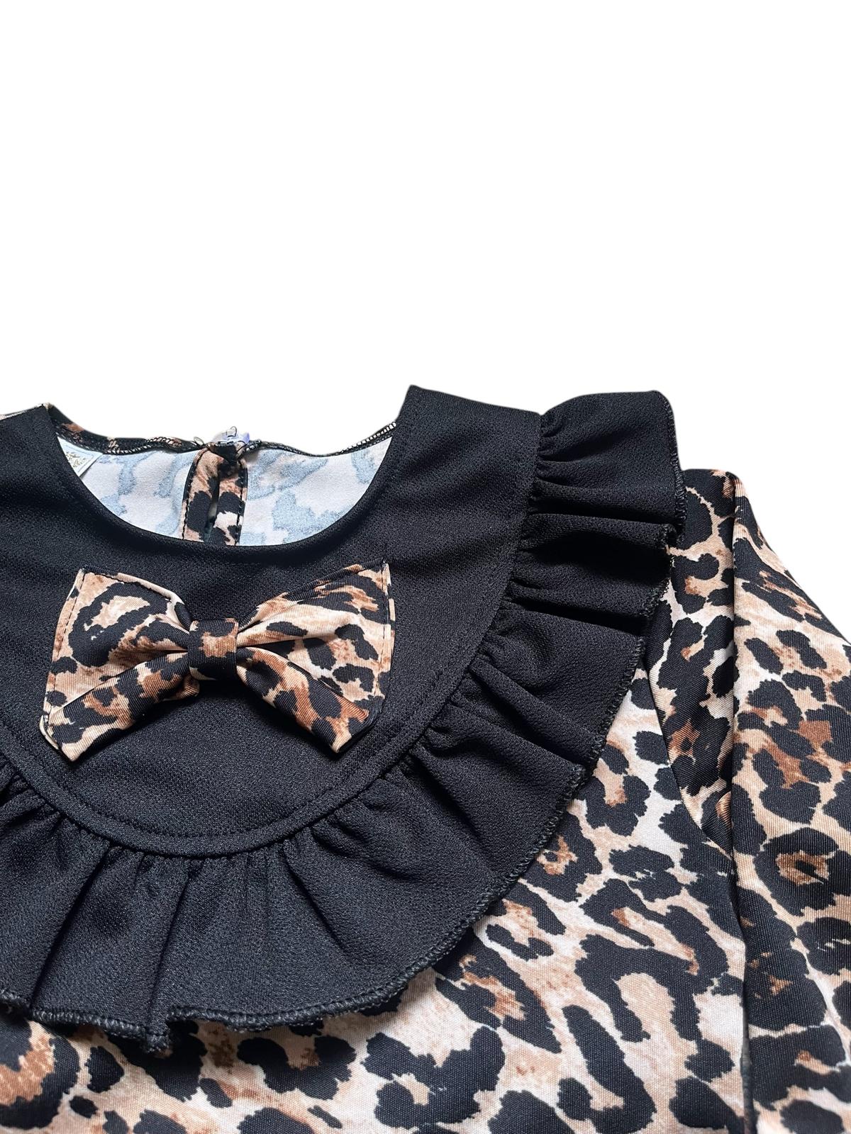 - Bluz Özellikleri: Siyah renkte, leopar desenleri ile özelleştirilmiş bluz, modern ve şık bir görünüme sahiptir. Kol detayları ve yakası özenle tasarlanmış olup, çocuğunuzun stilini tamamlar.