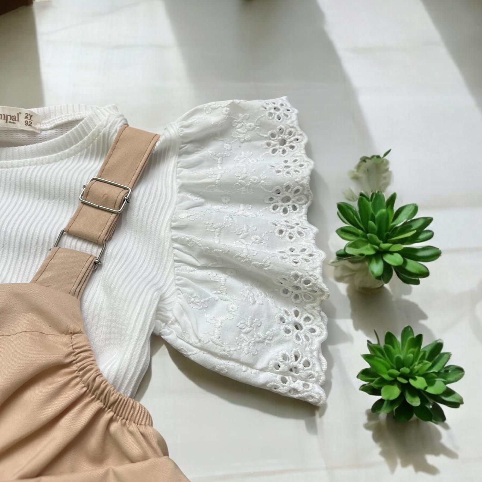 Pudra rengi, genç kızların zarafetini ön plana çıkarırken, bu elbisenin modern tasarımı ve detayları da dikkat çekmektedir. Yumuşak dokuya sahip kumaşı sayesinde çocuklar hem şık görünür hem de gün boyu rahat hareket edebilirler. Salopet, geniş kesimi ile her bedene uyum sağlar ve çocukların özgürce oynamalarına olanak tanır.