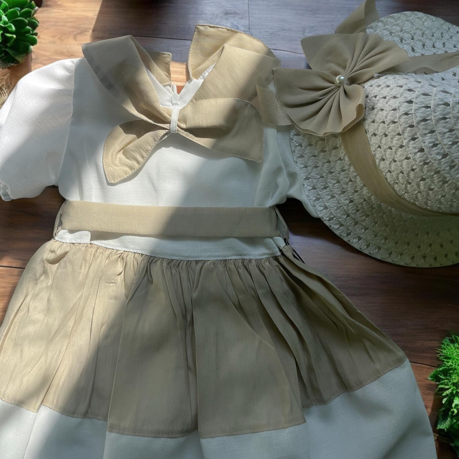 Şapkalı Pudra Kız Çocuk Elbisesi