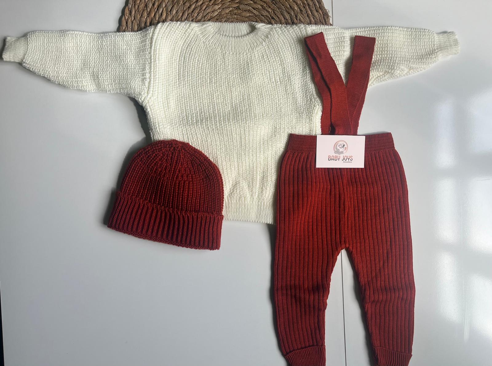 Selanik Örgüsü Oversize Kazaklı Çarpraz Askılı Triko Takım