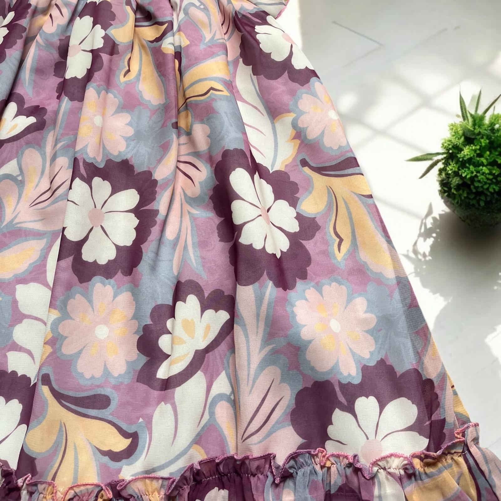 Şifonlu Çiçek Desenli 2-5 Yaş Kız Elbisesi